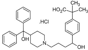 IUPAC Name : (±)-4-[1 hydroxy-4-[4-(hydroxydiphenylmethyl)-1- piperidinyl]-butyl]-α, α-dimethyl benzene ester